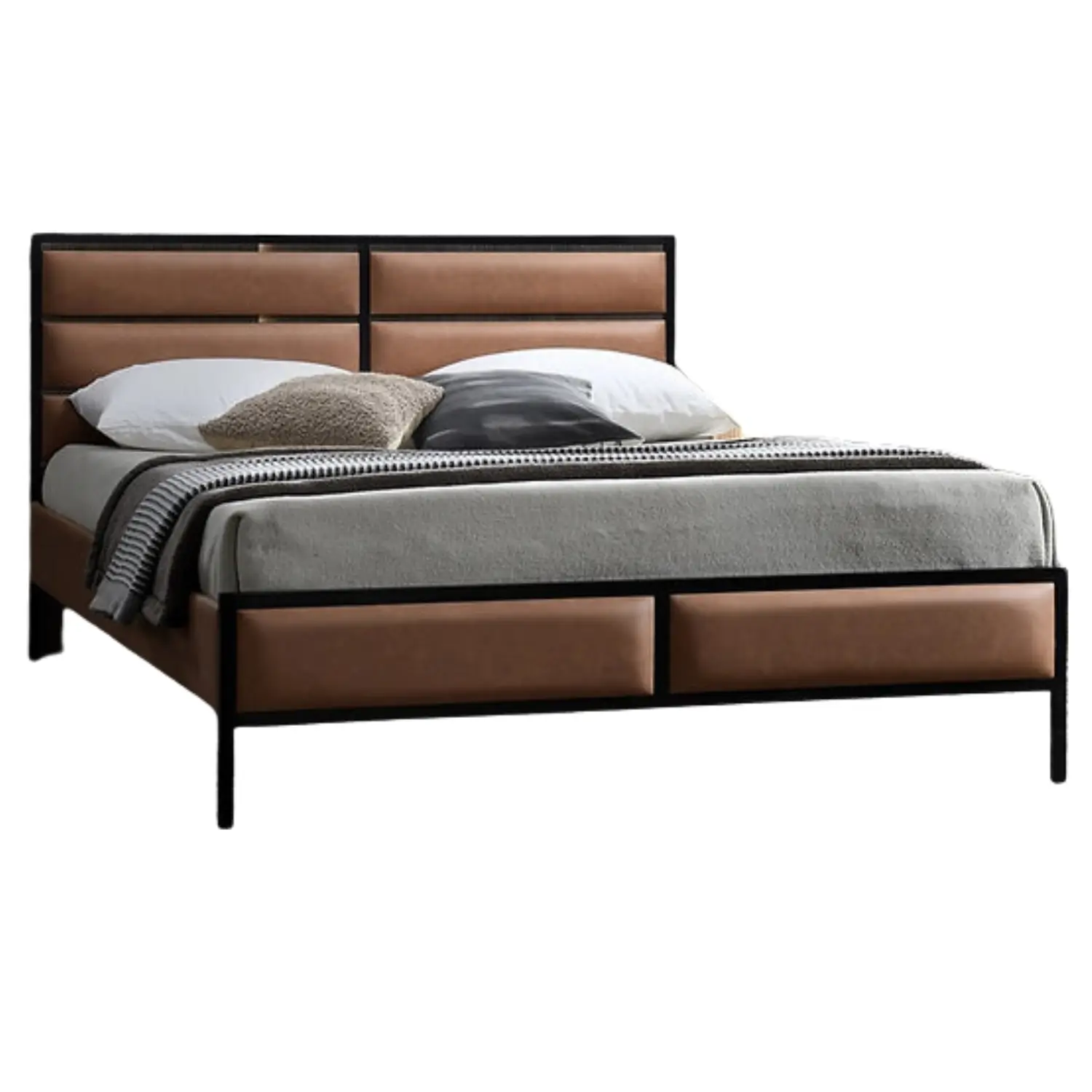 Industrial Style: High-Density Foam Padding with with Tan PU Inserts in metal platform bed. The subtle elegance adds a touch of sophistication to your bedroom, making it a versatile choice for any taste or preference.