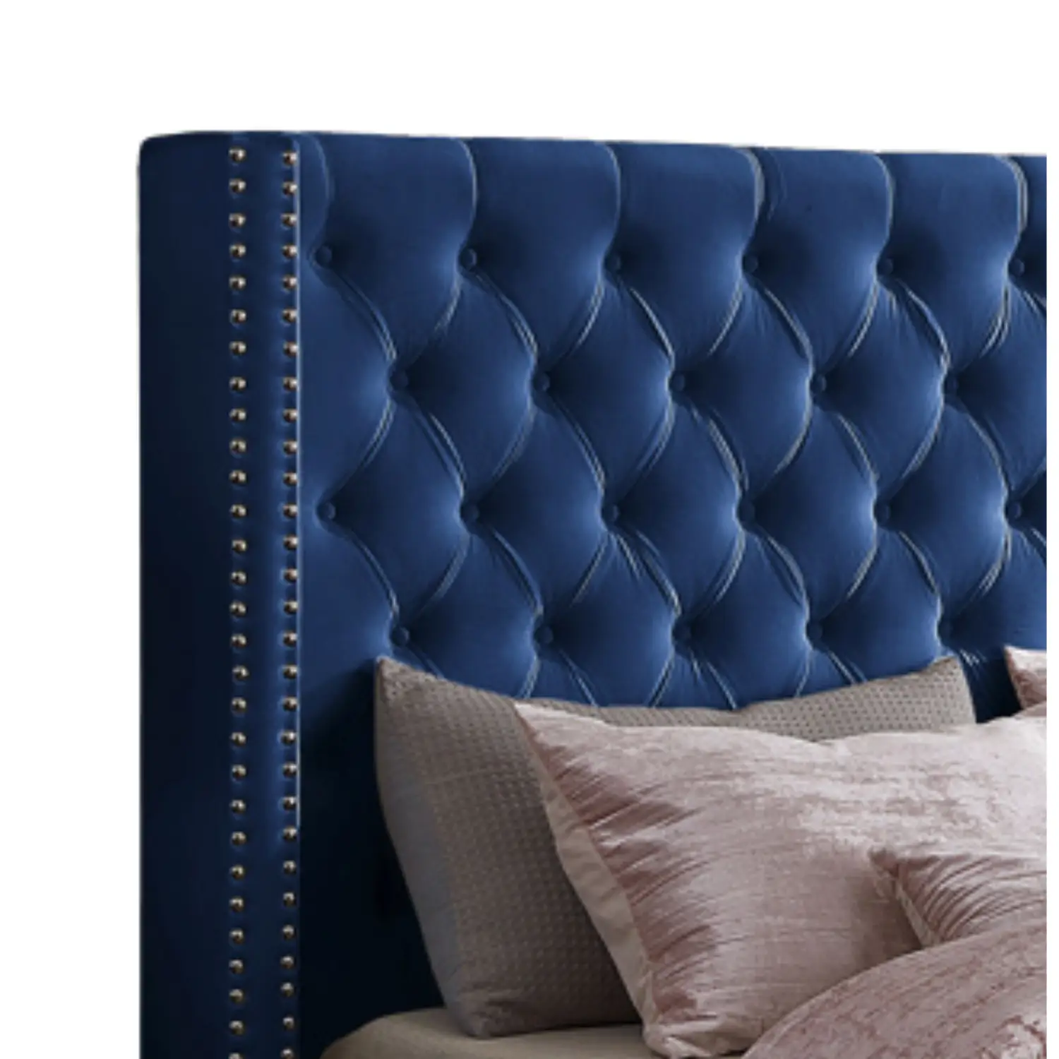 Tufted bed with Nail-head Accented wings- Blue Velvet