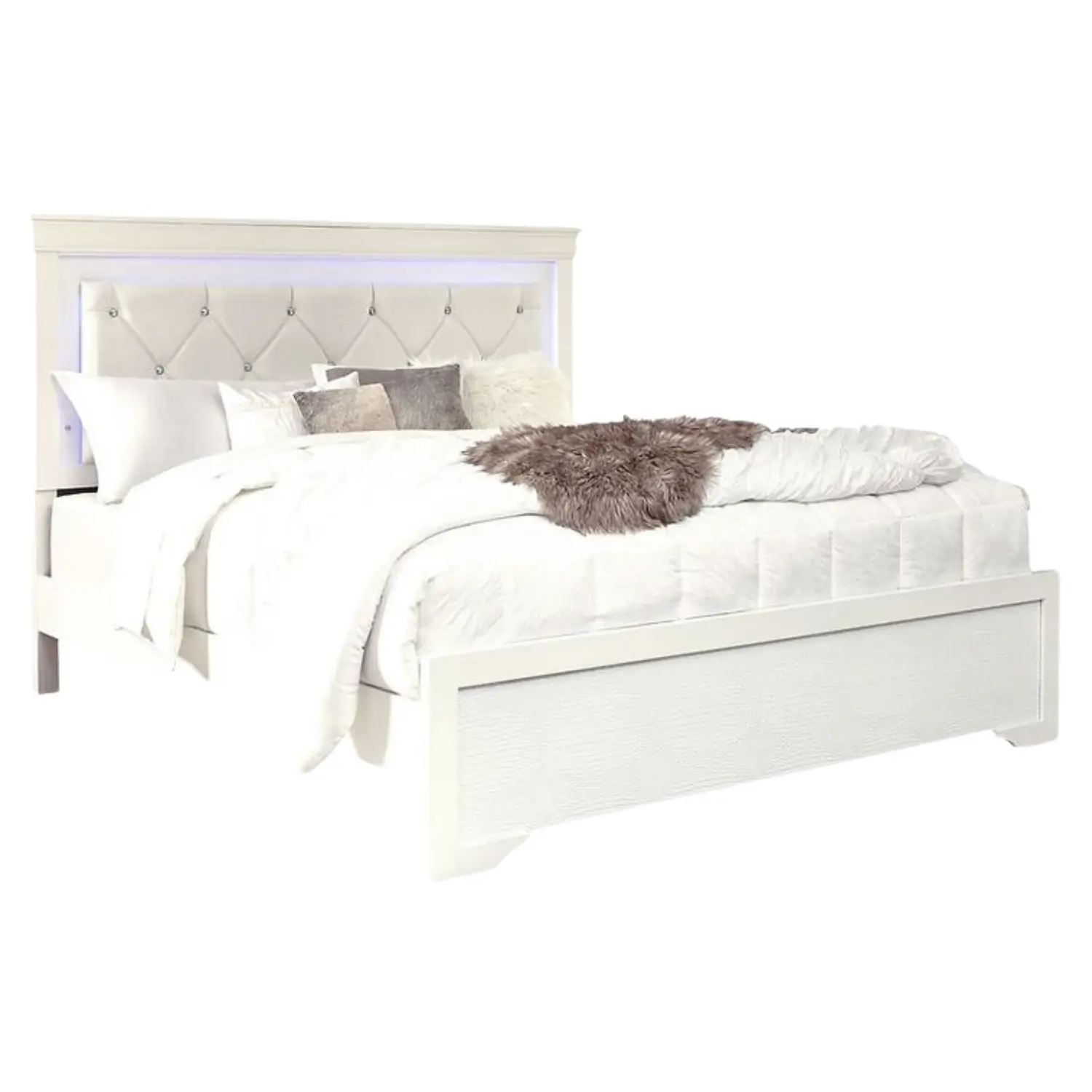 Pompei – LED Touch Lights on Headboard Upholstered Crocodile PU Headboard with Chrystals-White
