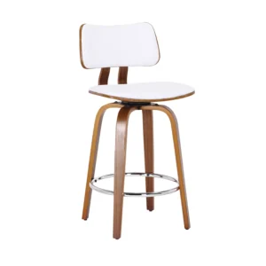 Zuni 26" Counter Stool with Swivel in White Faux Leather and Walnut